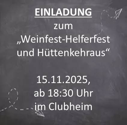 Wir laden alle Weinfest-Helfer und Mitglieder des TCA ein, bei Speis und Trank einen gemütlichen Abend im und um unser Clubheim herum zu verbringen. Details zum Fest sind gerade noch in der Planung, nähere Infos folgen. Bitte haltet Euch aber den Termin schonmal frei. Gefeiert wird am 15.11.2025, ab 18:30 Uhr auf unserer Anlage. Wir […]